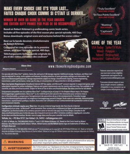 The Walking Dead is a five-part game series set in the same universe as Robert Kirkman's award-winning comic book series. Play as Lee Everett, a convicted criminal, who has been given a second chance at life in a world devastated by the undead. With corpses returning to life and survivors stopping at nothing to maintain their own safety, protecting an orphaned girl named Clementine may offer him redemption in a world gone to hell.