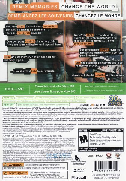 Remember Me is a 3rd person action adventure where players take on the role of Nilin, a former elite memory hunter with the ability to break into people's minds and steal or even alter their memories. The authorities, fearful of her knowledge and capabilities have arrested Nilin and wiped her memory clean. After her escape from prison, Nilin sets out on a mission to recover her identity, helped by her last and only friend. This search for her past leads to her being hunted by the very people that created this surveillance society.