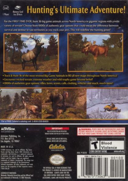 Cabela's® Big Game Hunter™ 2005 Adventures takes you on a journey like no other. For the first time ever progress through a linear, story-driven hunting adventure. Explore inter-connected maps, trek through a wide variety of environments and terrains, meet helpful local wardens, spend the night in a log cabin or visit a hunting store to gear up for your next mission. With 36 big game animals to hunt - here's your opportunity to bag record-breaking trophies. Cabela's® Big Game Hunter™ 2005 Adventures delivers the virtual hunting trip of a lifetime!