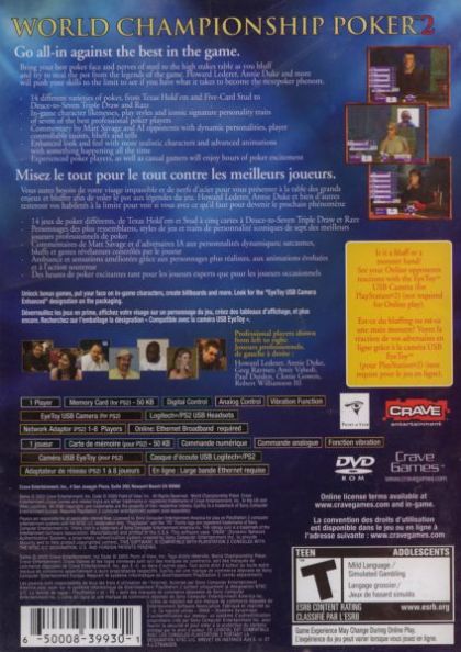Developed by Point of View, World Championship Poker 2 features a much more detailed one player game, where you now have to work your way up the ranks, starting in your mom's basement. Once you start winning and accumulating money, you can spend your winnings on increasingly better pads, and furnishings. Hit a losing streak, and you may have to hock your stuff to stay in the game. Other features of WCP2 include: