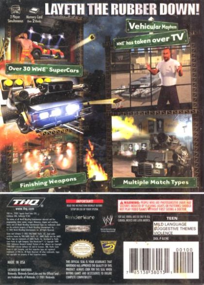 World Wrestling Crush Hour takes the intensity, competitiveness and brute strength from the squared circle and drops it into the world of car combat. More than twenty World Wrestling Superstars jump into their Super Cars bringing the pain to the streets. Layeth the rubber down in the Rock's™ speedster, cruise and bruise in the Hardy Boys'™ souped up Woody or pummel the competition in the Big Show's™ diesel. It's going to take more than a three count to win in this arena.