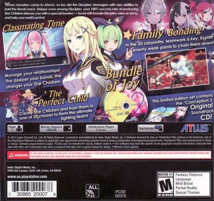 In Conception II, players take on the role of a young man beginning his training as a Disciple - a human gifted with the divine powers of one of the Star Gods, and one of the few who can fight the monsters that plague the world. These monsters emanate from the Pandora Labyrinth, which births these abominations at a prodigious rate. Worse yet, the Pandora Labyrinth is beginning to spawn labyrinths of its own, so it's up to the Disciples to put an end to it. And even worse than that, a Star God's power only resides within a human until the age of 18 and the need for new Disciples is at an all-time high. Meaning Disciples will have to combine their powers to "create" Star Children who can fight for them in battle. Let's put it this way... it brings a new meaning to the phrase "after-school activities."
