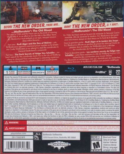 Wolfenstein®: The Old Blood is a standalone prequel to the critically acclaimed first-person action-adventure shooter, Wolfenstein®: The New Order. The adventure, which spans eight chapters and two interconnected stories, features the hallmarks of MachineGames - thrilling action, immersive story and intense first-person combat. As war hero B.J. Blazkowicz, arm yourself with new weapons such as the bolt-action rifle and grenade-launching Kampfpistole as you attempt to thwart the advancing Nazi war machine, and take advantage of duel-wielding pipes that can be used for wall climbing - or for vicious take-downs of never-before-seen Nazi adversaries.