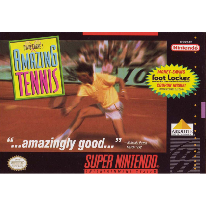 Trade in your racquet for a game controller. The category of sports home video games has just taken a quantum leap forward into a new dimension of realism - David Crane's Amazing Tennis! Developed by David Crane, an industry pioneer and one of the best-selling game designers of all time, Amazing Tennis redefines the term "state of the art." Every aspect of play has been re-created to ensure a precision feel and accuracy other tennis video games can't match. Amazing Tennis utilizes 22 different planes of depth and motion-picture-quality animation to provide a revolutionary gaming experience - the next best thing to being out there on the court yourself!