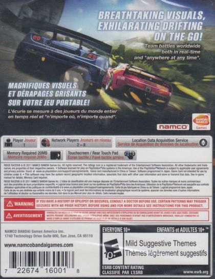 The high-octane racing franchise drifts onto the PlayStation Vita delivering stunning graphics and heartpounding action that players can truly feel. Ridge Racer features high-speed action, high-performance racing machines, and all-new gameplay additions creating an edge-of-your-seat experience only possible on the PlayStation Vita. Racing fans can also take the action online and tear up the track against players from around the globe using the PlayStation Vita "near" and Wi-Fi functionality and race agains other players' ghosts anywhere at anytime.