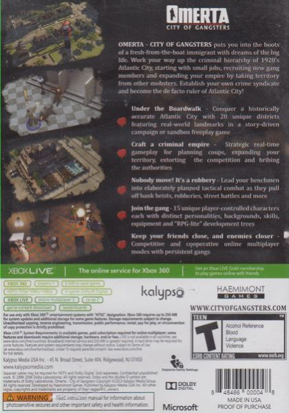OMERTA - CITY OF GANGSTERS is a simulation game with tactical turn-based combat. Taking the role of a fresh-from-the-boat immigrant, with dreams of the big life, the player will work his way up the criminal hierarchy of 1920's Atlantic City. Starting with small jobs, his character recruits a gang and expands his empire by taking territory from other gangsters. Eventually he establishes his own crime syndicate and becomes the de facto ruler of Atlantic City.