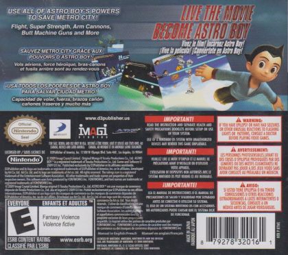 In ASTRO BOY: THE VIDEO GAME, players become the iconic hero, Astro Boy, and take to the streets and skies on an epic adventure to save Metro City from the clutches of the evil President Stone and his robot army. Utilizing Astro's entire arsenal of iconic weapons and abilitiesFinger Lasers, Arm Cannon, Butt Machine Guns and Drill Attacks, players will battle hordes of robot enemies and colossal bosses including some never-before-seen enemies across Metro City and the mysterious Surface. Using an intuitive combat system that adds depth to gameplay, players will experience classic platform action and exhilarating flight combat levels as they use Astro's unique rocket boosters to hover, avoid enemies and zip out of the way of danger.