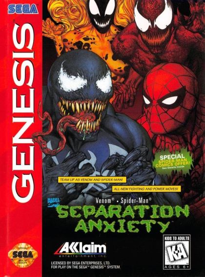 Parting is such sweet sorrow! Venom has been violently split from his living costume, spawning five deadly alien Symbiotes. In fierce two-player action, Venom joins forces with his arch-enemy, Spider-Man, to face the new strain of evil brought to life by chilling, computer-rendered graphics. Between the merciless Jury and awesome allies like Ghost Rider and Daredevil, Venom's out to part his Symbiote offspring from their newfound life!