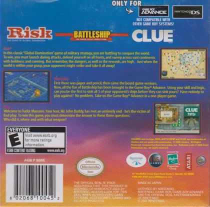 Risk / Battleship / Clue is a Miscellaneous game, developed by Gravity-I and published by DSI Games, which was released in 2005.