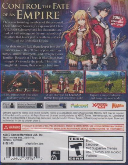 Taking place on the same continent as the fan favourite Trails in the Sky offshoot of Nihon Falcom's storied The Legend of Heroes franchise, Trails of Cold Steel (Sen no Kiseki in Japanese) is the first in the series to tread Erebonian soil and explore the inner political conflicts of this oft-mentioned powerhouse nation in detail. With a standalone story that also delves into the expansive lore that has become synonymous with the series, players can enjoy school life and bond with fellow students to earn new abilities in battle, take advantage of speedy, tactical turn-based combat with the newly-developed "ARCUS" system, and take part in dramatic events that stand to shift the balance of power between Erebonia's feuding nobility and commoners.