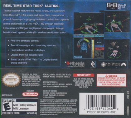 Star Trek: Tactical Assault is a real-time spaceship combat game for 1 or 2 players, featuring a wide array of authentic Star Trek races, ships, and weaponry from the universe of the original Star Trek series. Players take command of powerful Federation and Klingon warships and must outthink and out duel their opponents in order to succeed. Play through either the Federation or Klingon campaigns in single-player mode or go head-to-head against a friend in wireless multiplayer action.
