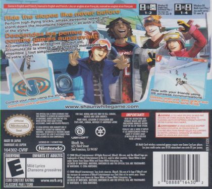 Developed in close collaboration with Shaun White, Olympic Gold Medalist and eight-time X Games Gold Medalist, Shaun White Snowboarding for the PSP system and DS allows players to enjoy the thrilling sport of snowboarding anytime, anywhere. Built from the ground up on both platforms, each version includes exclusive and unique features. Using intuitive controls, players can ride and compete on mountains around the world. They can also express their creativity through rides and customization and challenge their friends through wireless multiplayer.