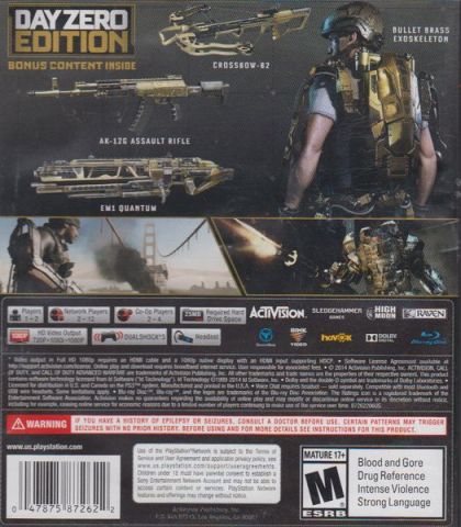 Developed by Sledgehammer Games (co-developers of Call of Duty®: Modern Warfare® 3), harnesses the first three-year, all next-gen development cycle in franchise history. Call of Duty®: Advanced Warfare envisions the powerful battlegrounds of the future, where both technology and tactic have evolved to usher in a new era of combat for the franchise. Delivering a stunning performance, Academy Award® winning actor Kevin Spacey stars as Jonathan Irons - one of the most powerful men in the world - shaping this chilling vision of the future of war.