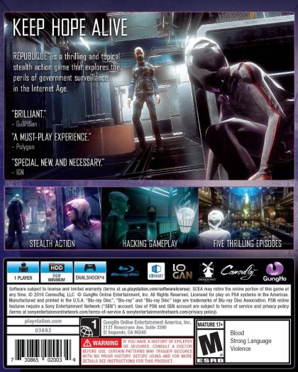 Now that Republique is on PS4, players can finally take full control of Hope, a young woman held captive inside Metamorphosis, a shadowy totalitarian state ruled by the omnipresent Overseer. By hacking into this secret nation's elaborate surveillance network, players and Hope begin a treacherous and thrilling journey to freedom. Seattle-based Camouflaj developed the game and has received numerous awards including "Excellence in Storytelling" from the International Mobile Gaming Awards (IMGA). With a 87 percent Steam user rating, Republique's reviews have been positive. Although it was previously limited to PC and mobile, now PS4 players can look forward to experiencing the entire season-including the fifth and final episode-in one complete package.