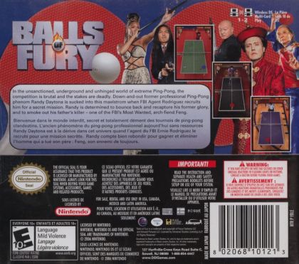 Welcome to the unsanctioned, underground, and utterly unhinged world of clandestine ping-pong. Based on the forthcoming film, Balls of Fury, you take the role of washed-up ping-pong champion Randy Daytona who faces an uphill battle to reclaim his once legendary skills. The government has recruited Randy to go undercover and bust a crime lord, who hosts an annual ping-pong tournament in which all the losers are executed.