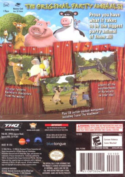 Welcome to the yard where the vibrant world of Nickelodeon's Barnyard movie will come to life. Gamers of all ages will be entertained by this brand new barnyard adventure. Players will start off as the 'new cow on the block,' form alliances with fellow animals, taking on challenges and sporting competitions, protecting the farm from coyote invaders, and doing lots of goofing off on the side. Players will be able to explore a fully interactive, 3D world and prove that they have what it takes to be the biggest party animal of all.