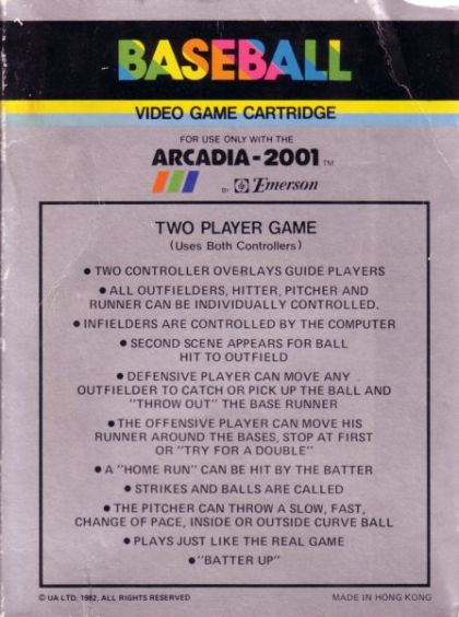 This comedy of errors belongs on the permanent DL. It only takes one look at that white grass and green diamond to know that this game is hurting in the worst way. The players are large and the ball moves smoothly, but that's the extent of the good news. You can't even throw a pitch until the second player presses the "signal to pitch" button on his controller. Ugh!! This ill-conceived design flaw makes every game about twice as long! The pitches come in pretty fast, and you swing by pressing a button on the keypad. When balls are hit to the infield, the fielding is totally automatic, which is lame as hell! When a ball's hit to the outfield, a cut-away screen depicts a fielder in a large triangle as the ball approaches from the left. Apparently this is meant to show the ball heading towards the fence, but it looks atrocious and is totally disconcerting. Once you have the ball, you can whip it between bases pretty quickly thanks to the diamond-shaped graphic on the control pad overlay. Unfortunately, the programmers had to get cute and add "arcs" to each throw. As a result, the ball movement looks bizarre - as if it has a mind of its own! Baseball also has its fair share of glitches, including one that will not let your fielder relinquish the ball until all the runners have scored! Yeah, I know it's just a minor bug, but I like to nitpick! And then there's the audio. This game beeps so incessantly that it should come with ear plugs! My buddy Scott offered a five word review for this game: "Beep beep beep beep".