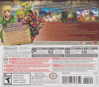 Cut down entire legions of enemies using over-the-top powerful Dynasty Warriors-style moves as Hyrule Warriors comes to the Nintendo 3DS family of systems. In the portable version, experience new story elements and playable characters from by The Legend of Zelda: The Wind Waker game such as Tetra, King of Hyrule and more. Additional new features, such as the ability to switch between different characters on the fly, allow you to strategically position characters and defeat foes in all-new ways like never before.