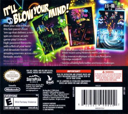 Big Bang Mini's main objective is to use the stylus to create fireworks in order to deal with waves of enemies that loom overhead. Miss and you'll be forced to tackle another challenge - avoiding falling sparks created by your missed explosions. The end of each level comes with a unique opportunity for would-be fireworks designers to make the 'Final Bouquet' ... a one-of-a-kind masterpiece that will proclaim your victory. With over 90 levels to complete, Big Bang Mini offers players huge scope for its special brand of fireworks fun.