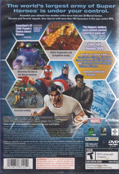Marvel: Ultimate Alliance is an all-new action/RPG where players create their Marvel dream team from the largest roster of Super Heroes ever in an epic quest that will determine the fate of Earth and the Marvel universe. For decades, Earth's Super Heroes have opposed evil in their own cities, and on their own terms. But now, Dr. Doom and a newly reformed Masters of Evil – the greatest collection of Super Villains ever assembled – have plans for world domination, and the heroes must band together to defeat them. Playing as some of the most revered Marvel characters, gamers will embark on a dangerous journey across exotic terrain and well-known comic book locations like Atlantis, the Shield Heli-Carrier and the Skrull home world in an attempt to defy the world's most notorious Super Villains. Created by Raven Software, Marvel: Ultimate Alliance lets players control the most powerful Super Hero alliance the world has ever known.