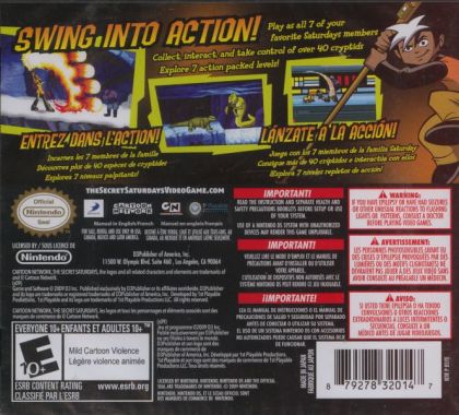 The Secret Saturdays: Beasts of the 5th Sun is the only video game based on the hit action-adventure television series from Cartoon Network, THE SECRET SATURDAYS. Players take control of Zak Saturday and his family the Saturdays, scientific explorers dedicated to discovering and protecting secret artifacts and mysterious creatures known as Cryptids. Using Zak's unique powers and The Claw to battle enemies and swing through exciting environments, players will find, collect and interact with more than 30 never-before-seen Cryptids. Along the way, players can record the details of each find in their very own Cryptipedia. Fun puzzle elements allow players to locate hidden Cryptids and discover new paths as they fight against the dastardly V.V. Argost's evil plot to control the Cryptids and rule the world.