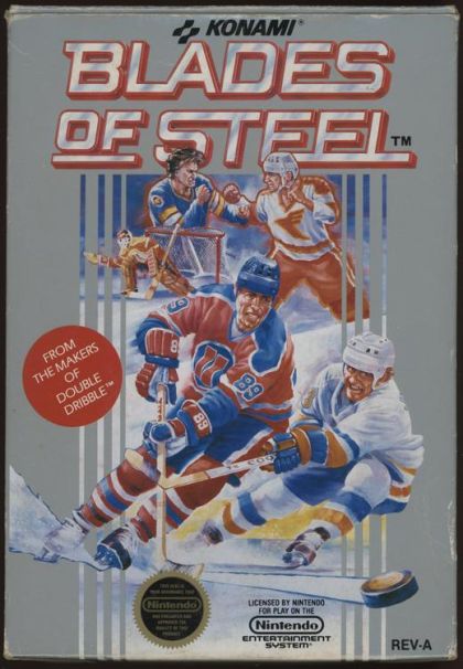 Based on the arcade game, Blades Of Steel is a hockey arcade action game (gameplay doesn't require the need to worry about statistics or provide the ability to customize teams.) Two players can play against each other, or one player against the computer. In one player mode there are single game and tournament mode options. From time to time a fight may break out, which will provide a close up view of the two players. The player has control during the miniature fight game sequence, with the loser having to spend time in the penalty box. The referee will break up fights that go on too long, and calls a few penalties such as icing. Several short clips of digitized voices are also featured.