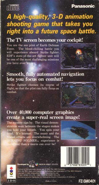 The gameplay is very simplistic. The player uses the D-pad to move around a cursor on the screen, to aim wherever the player wants the weapons to fire, and the main buttons to fire the two main weapons of choice, a Laser Vulcan Cannon and a Blast Smash that is guided automatically at incoming enemies. However, unlike other first-person space shooters for the 3DO, there is no way of controlling the actual ship as its' movement is on a predetermined course and can't be manually deviated. The story is told through CGI cinemas.