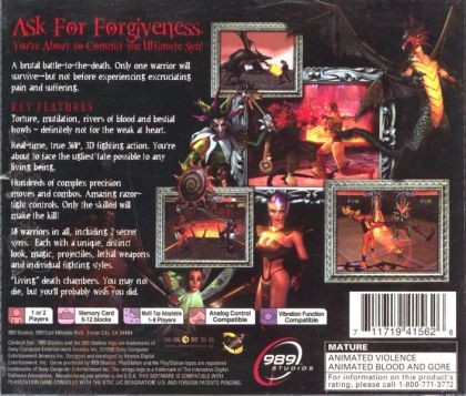 A 3D fighting game with free roaming features that allows you to move around a small interactive battlefield during combat, similar to the slightly more famed Ehrgeiz. The combatants are designed out of a dark fantasy world similar to Dungeons & Dragons, a great number of them non-human, each armed with melee weapons fitting for the style. The title gave access to combos, juggles, stage hazards, fatalities, projectiles, and battlefield powerups.