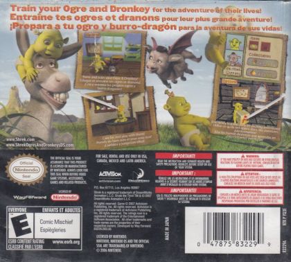 Shrek and Fiona's energetic triplets appear along side Donkey and Dragon's playful offspring, the dronkeys, exclusively on the Nintendo DS. This game gives handheld gamers the chance to train, play and explore with their mischievous new friends on wild adventures throughout the hilarious world of Shrek.