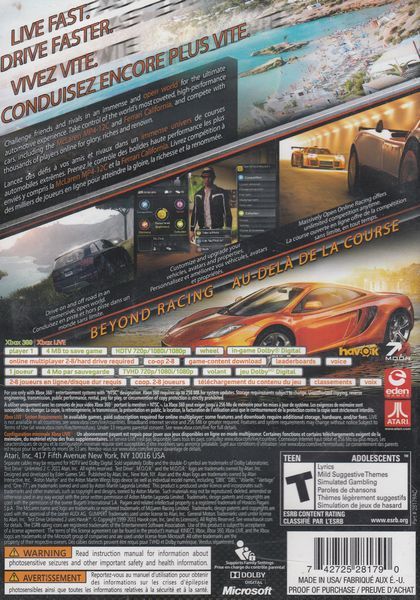 Test Drive Unlimited 2 transforms the driving genre, adding the persistency, progression and customization of the latest multiplayer games to the auto racing experience. Test Drive Unlimited 2 blends single player and multiplayer experiences seamlessly, creating a dynamic world of evolving content and challenges. Players define their online persona through unparalleled customization of their avatars and vehicles, and the acquisition of property, clothing and other accoutrements of a luxurious international lifestyle. All-new race types, vehicle classes, environmental challenges, locations and much more push this epic franchise to new levels of performance.