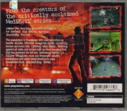 The population is threatened with near extinction as hostile alien forces ravage the planet, converting human survivors into cyborg warriors. Working against all odds and armed with an Alien Imaging Unit that has replaced his left eye, Resistance fighter Lt. Riley Vaghan must use firepower, stealth, intelligence and sheer determination to save humankind from impeding doom.