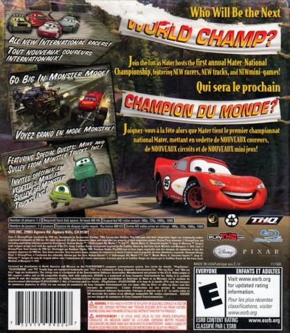 Cars: Mater-National features an all-new International group of racers vying for their chance to compete against Lightning McQueen in the First Annual Mater-National Race Festival, hosted by Lightning's best friend, Mater. Explore the new and improved open world of Radiator Springs, play in the all-new Monster Mode, jump into the fast lane with 5 new international racing competitors, burn rubber on new tracks, and twist and turn your way through new mini-games like Ramone's Rhythmic Rumble and Fillmore's Fuel Frenzy.