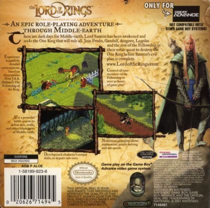 For the Game Boy Advance RPG, you must battle your way past the Ringwraiths in turn based style (similar to Final Fantasy and the like) action, including the ability to cast spells (thanks to Gandalf) as well as solve puzzles and deliver messages to many of Middle Earth's characters.