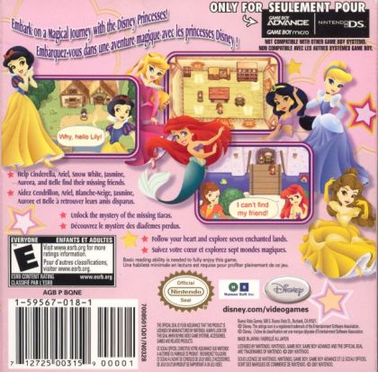 Disney Princess: Royal Adventure for the Game Boy Advance is an action/adventure game inspired by the successful Disney Princess franchise. As the castles clever young caretaker the player goes on a quest to find a collection of special crowns that are missing from her enchanted castle home. As she ventures to different areas of the castle and fun places in and around the village she will increase her skills and earn enough points to explore several different worlds. During her exploration she becomes friends with the Disney Princesses -- Jasmine Cinderella Belle Ariel Snow White and Sleeping Beauty -- who will help her on her journey.