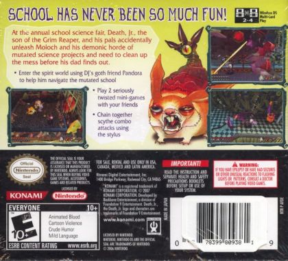 It's the worst science fair ever as Death Jr. and his pals make their way through a crazy world of science projects gone wrong! Use the touch pad to execute cool scythe combos, switch between DJ and Pandora and play seriously twisted mini-games in a warped and twisted platforming adventure.