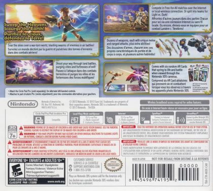 One of the most beloved franchises in Nintendo's long history makes its glorious return in spectacular 3D. Pit of Kid Icarus fame is back in a new game designed specifically for the Nintendo 3DS system by Masahiro Sakurai, creator of the Kirby and Super Smash Bros. franchises, and his development team at Project Sora. Kid Icarus: Uprising is a fast-paced and actionpacked blend of aerial and ground-based shooting built on elegantly intuitive and streamlined play control. This follow-up to the original Kid Icarus - released for the Nintendo Entertainment System in 1987 - has been at the top of gamers' wish lists for years.