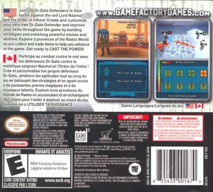 Join the Di-Gata Defenders in their battle against the evil Lord Nazmul and his Order of Infinis. With the help of their powerful Guardians these young heroes fight to control the destiny of four pure stones. These stones are the last line of protection between the good people of Rados and Lord Nazmul who wants to rule them. By getting their hands on the Powerful stones, Lord Nazmul and the Order of Infinis will be able to release the trapped evil Megalith and build a machine to permanently destroy the precious pure stones! Not only will they then rule Rados, but they will also gain eternal life!