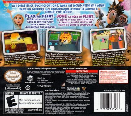 Flint Lockwood is a young inventor who dreams of creating that one big invention that will improve everyone's life. When he created the F.L.D.S.M.D.F.R. (Flint Lockwood Diatonic Super Mutating Dynamic Food Replicator), it looked like he finally pulled it off, when food miraculously began to fall from the sky! However, what started as a triumph for the people of his hometown of Swallow Falls soon turned into a mess of gigantic pro-"portions." Now Flint must utilize every invention and crazy gadget he has made in order to save the world from a food-tastrophe!