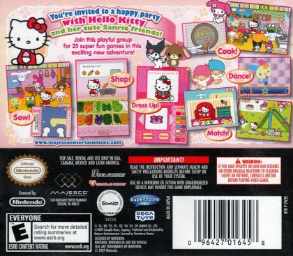 Join Hello Kitty and her friends for a Happy party and have some fun! Get together and enjoy their many activities, including shopping, cooking, dress making, dressing up and dancing - all in the cute and lovable style that has made the Hello Kitty franchise a hit all around the world.