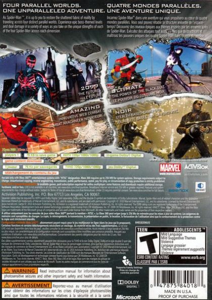 Spider-Man: Shattered Dimensions is a thrilling action-packed adventure set in four dramatically different universes from legendary Spider-Man lore, each with a distinct Spider-Man armed with unique skills and strengths, in one original storyline. Players will be transported to new locations never before seen in a Spider-Man game, from lush jungles and dusty deserts to various urban terrains. Acclaimed comic book writer Dan Slott takes players on a mission to contain the magical energy of the Tablet of Order and Chaos, which has been shattered and sent hurtling across parallel universes, and battle fan-favorite villains in a quest to restore the fabric of reality.