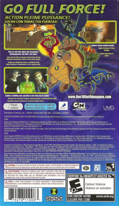 BEN 10: ALIEN FORCE The Game, based on Cartoon Network's hit television series, is the only console videogame that allows players to take command of characters from the ALIEN FORCE team to authentically control and experience their adventures. The game begins five years after Ben put away the DNA-scrambling Omnitrix, but now Grandpa Max has gone missing and the planet Earth is in grave danger. Gamers must help Ben take the Omnitrix out of retirement and lead eight different playable charactersincluding cousin Gwen, enemy-turned-ally Kevin Levin and five of Ben's brand new alien formsSwampfire, Jet Ray, Humungousaur, Spidermonkey and Big Chillto utilize their all-new super powers and defeat the intergalactic invaders! Gamers will experience tons of all-new story content on all platforms, and can even adventure as additional alien forms Echo Echo, Chromastone and Goop exclusively with the Nintendo DS version. Gameplay is fast-paced, 3D, action adventure style offering an unlimited combo system with puzzles and challenges that will engage players of all levels for hours at a time. BEN 10: ALIEN FORCE: The Game comes on the heels of a tremendously successful inaugural game, BEN 10: Protector of Earth, which launched in November 2007 and has sold more than one million units worldwide.