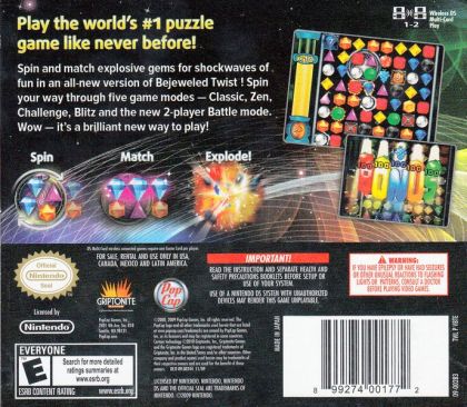 Spin, match, explode... Wow! It's a brilliant new way to play casual gaming sensation Bejeweled from PopCap. Spin and match explosive gems for shockwaves of fun. Rotate jewels to set up electrifying combos, outwit surprising obstacles like locks and bombs and create high-voltage flame and lightning gems. When you want to dial up the intensity, go for Challenge mode or five-minute Blitz. And if relaxing is more your style, kick up your feet with stress-free Zen. No matter what the mode, you'll discover new strategies, improve your moves and find endless ways to win!