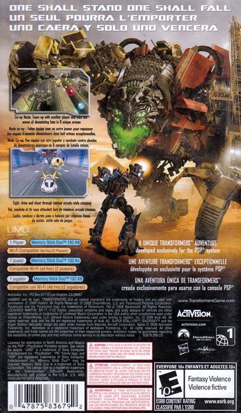(Gameplay information based on Xbox 360, PS3 and PC versions) Based on Hasbro's legendary TRANSFORMERS property and one of the most anticipated films of 2009 from Paramount Pictures and DreamWorks Pictures, Transformers: Revenge of the Fallen thrusts players into a battle for supremacy across the globe as either AUTOBOTS or DECEPTICONS to drive, fly, fight and blast their way through intense, pressure-packed levels. Delivering more control than ever before, players can select from an extremely diverse range of playable TRANSFORMERS ... each with distinct personalities, abilities and weaponry ... and jump straight into action as they instantly switch between robot, vehicle and weapon modes to fight for the preservation or annihilation of all mankind. For the first time in the TRANSFORMERS universe, players can also fight the epic war between the AUTOBOTS and DECEPTICONS online in explosive, multiplayer combat.