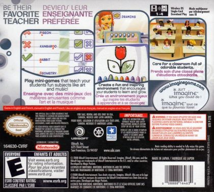 Imagine Teacher is part of Ubisoft's Imagine video game range, the first-ever brand developed to appeal to 6–14 year-old girls. The Imagine brand is prone to expand as a major part of the company's long-term vision for casual gaming. Imagine Teacher allows young girls to live the rewarding life of a young teacher by embodying a rookie teacher who takes over a class in a brand new & modern school.