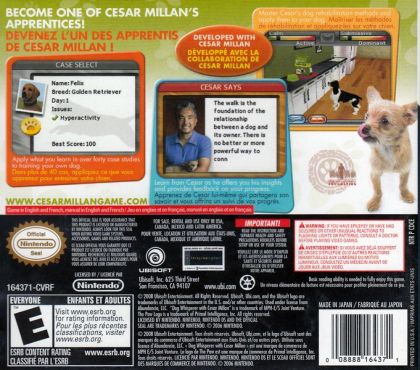 Cesar Millan's Dog Whisperer uses interactive games to teach Cesar Millan's world-renowned methodology and help owners understand how their dogs' minds work. The player is confronted with 40 different common dog issues and, using Cesar Millan's guidance, learns how to deal with each of them.