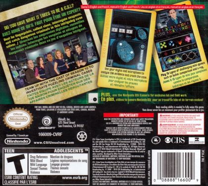 Team up with the cast of CSI to solve Sin City's murder mysteries. Explore brand-new, bizarre cases written by the writers of the acclaimed CSI TV series. Investigate the scene, collect evidence, question witnesses, and bring suspects to justice!