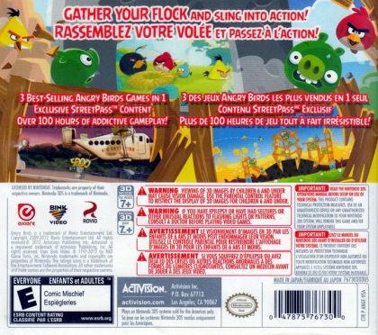 Gather your flock and sling into action! One of the world's most popular gaming brands and fastest growing consumer franchise ever - Angry Birds - is finally taking flight and for the first time ever, they're crashing onto Xbox 360, Playstation 3 and 3DS consoles everywhere! Play Angry Birds like never before in stunning HD with totally new controls built for a living room. Try out Kinect or Move for easy family-friendly game play.