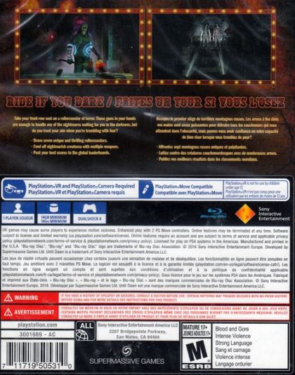 Arm yourself to the teeth then blast your way through a horde of enemies and monsters coming at you from all angles. Duck and dodge everything that's thrown at you in this fright-filled rollercoaster ride from hell - exclusive to PlayStation VR.