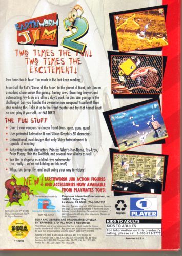 Gameplay is similar to the first game, with Jim jumping and running through the levels. There are 5 weapons more than the original game to collect. Characters like Princess Whats-Her-Name and Psy-Crow appear.