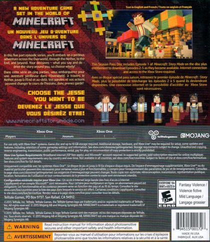 As Jesse, you'll embark on a perilous adventure across the Overworld, through the Nether, to the End, and beyond. Your decisions - what you say and do - drive the story around you, so choose wisely! A five-part episodic series. This disc includes episode one, and grants access to four more episodes as they become available to download (Internet connection required).